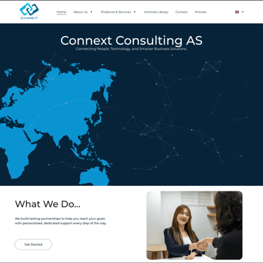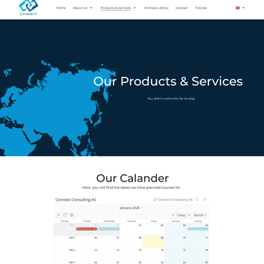 Connext Consulting AS is a multi-page site with e-commerce, calendar and multi-language available throughout the site.